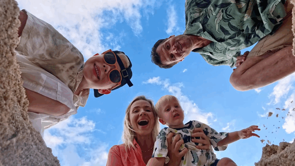 旅行では、自撮り棒を伸ばして家族全員をフレームに入れたり、リモコンで遠隔撮影して絶景をバックに全員集合写真。