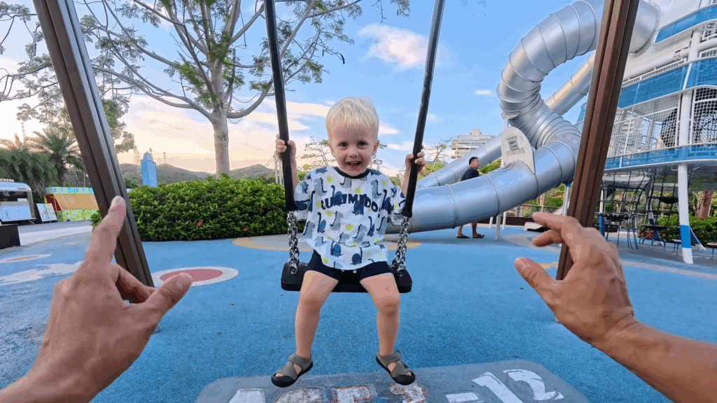 子どもが走るとき、遊ぶとき、その目線から世界を残せるので「こんな表情してたんだ!」と驚くはず。