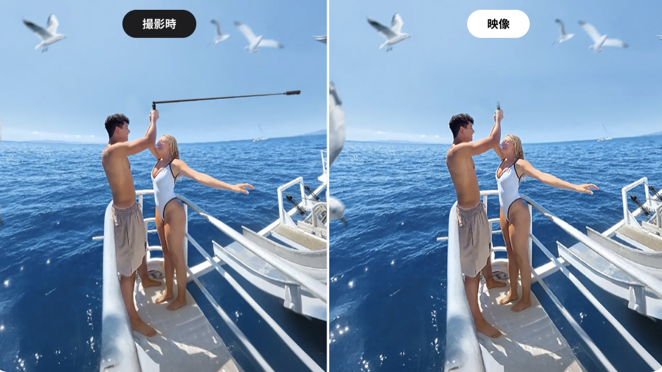 結果、まるでドローンで撮ったような浮遊感のあるカットが誰でも手軽に撮影できちゃいます。